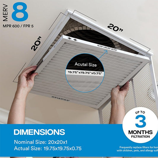 Air Filters 20x20x1, MERV 8 Dust Defense, MPR 600, Furnace Vent Air Filter (Pack of 6) - HVAC, AC Furnace Filter Replacement Set, Keep Air Fresh, Actual Size: 20x20x1
